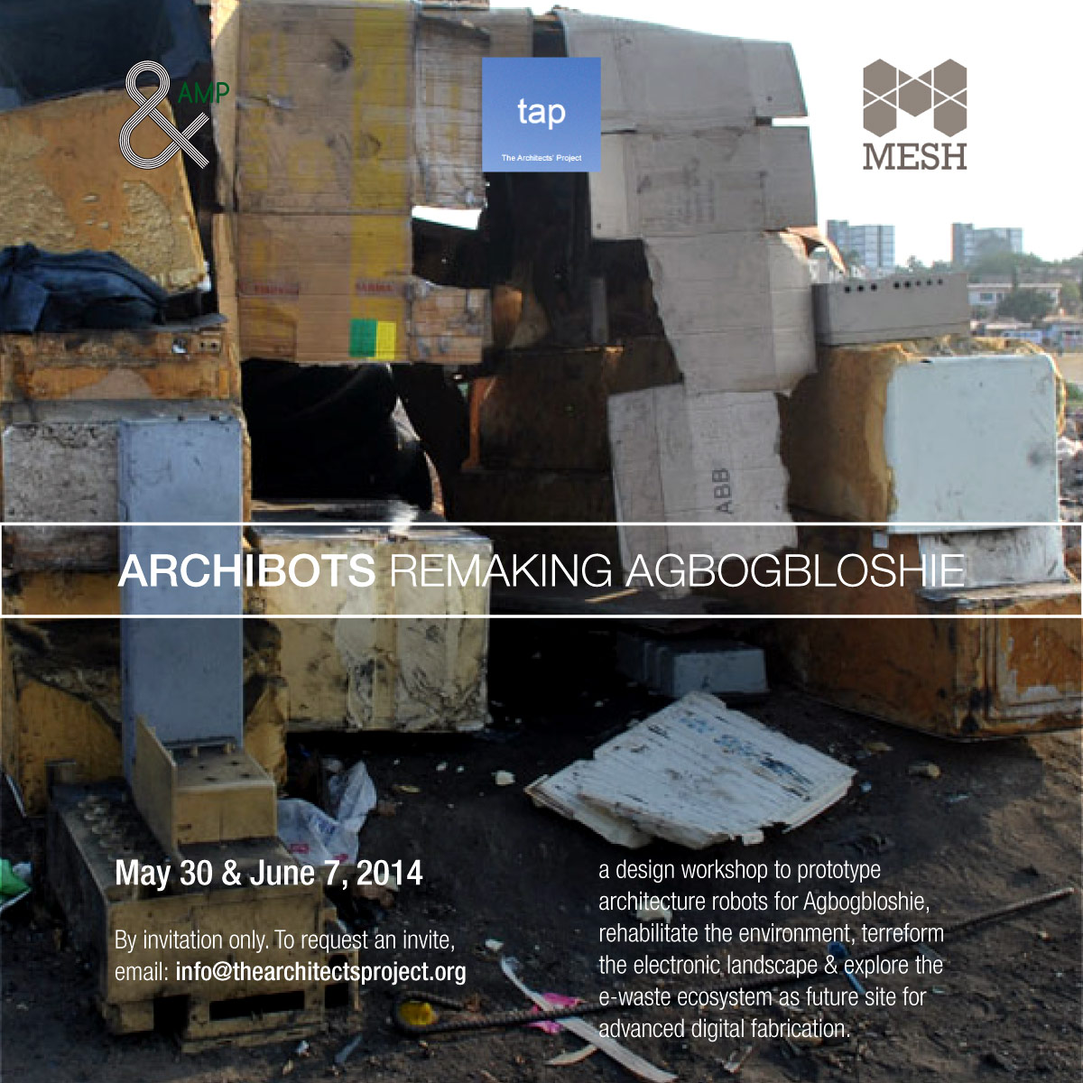 Re-making Agbogbloshie is a collaboration between Agbogbloshie Makerspace Platform (AMP) and The Architects’ Project (tap:). The workshop seeks to design and prototype practicable architectural interventions — at the level of equipment — that can inform the discourse of industrial landscapes like Agbogbloshie scaled through kiosk-size 3E materials processing machines, i.e. micro-industrial digital fabrication bots.