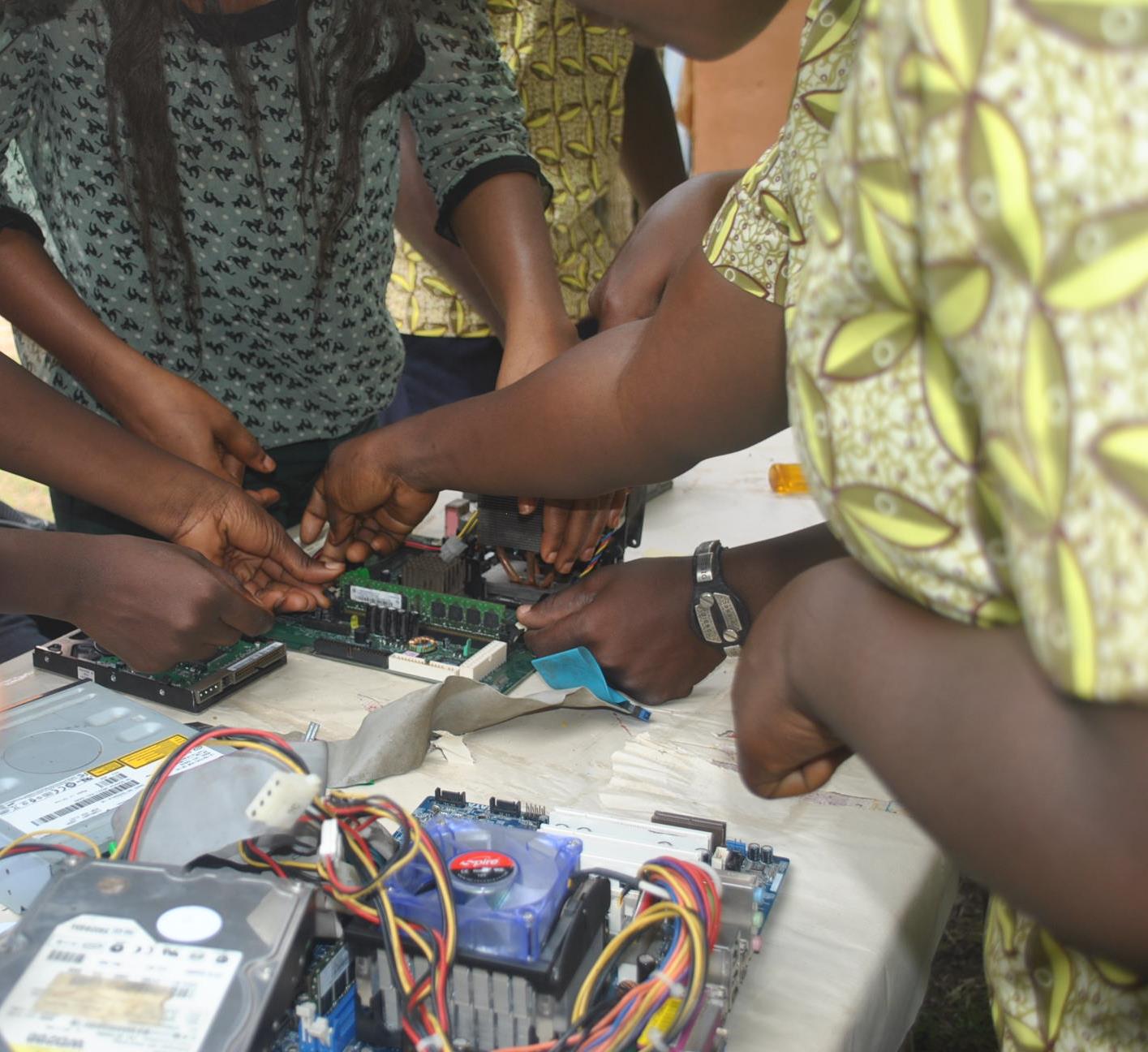 As part of the AMPQAMP at the Kokrobite Institute, AMP hackers and/or STEAM students and graduates, collaborated with hackers from the Woelab (Togo’s very active makerspace!) to build a Jerry. A Jerry is a computer that is made with parts from old computers assembled in a jerrycan. This workshop was significant, mainly due to the transfer of knowledge which occurred during the assembly process. As part of this highly didactic process, a team comprising makers from both AMP and Woelab visited Agbogbloshie.
