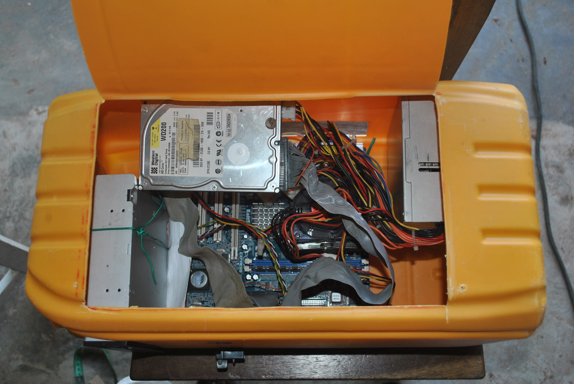 Back at the Kokrobite institute, the Woelab team, led by Rhode Audrey and Martine Pandam together with the AMP team led by Daniel started to assemble the Jerry computer. We first produced schematic sketches and then marked out and cut the JerryCan. We then placed the components: first the mother board, then the hard drives, then the cables, the power pack and finally the CD-ROM. In all, it was a very exciting experience. The excitement has spurred the AMP team on to explore further design possibilities. The team is advancing ideas such as the solar JerryTop: recovered laptop parts in a Jerrycan powered by recovered solar cells.