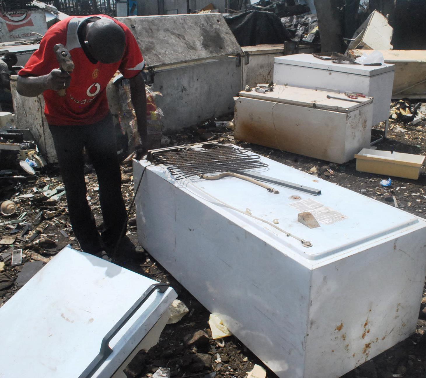 Zack dismantling a refrigerator during the AMP workshop in Agbogbogbloshie