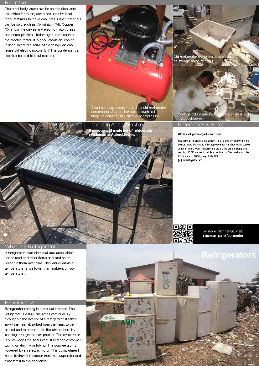 Agbogbloshie Makerspace Platform (AMP) is an experiment in youth-led R&D: a collaborative project to upgrade the quality of life and environment at Agbogbloshie, the largest e-waste processing site in Ghana. In actuality, Agbogbloshie may be the center, but the Accra-Tema scrap industry generally is much more distributed and has spatially many urban processing routes and clusters.